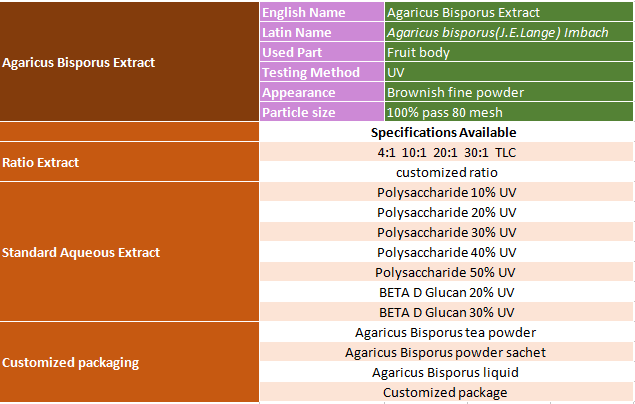 properties.Below are our Agaricus Bisporus Extract specification purity supported: