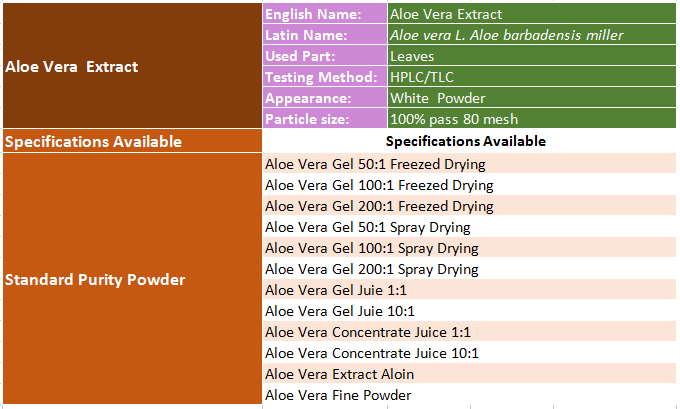 Supported Purity: Aloe Vera Extract Powder 1:1 50:1 100;1 200:1