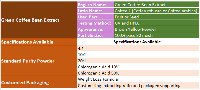 Supported Purity:Green coffee bean extract chlorogenic acid 10% 20% 50%